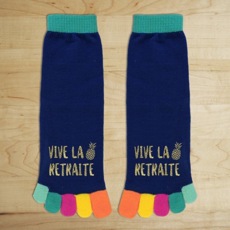Chaussettes orteils multicolores Vive la Retraite.