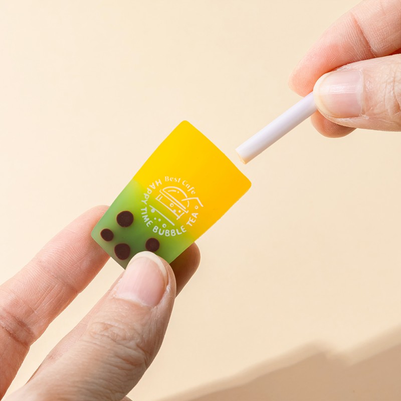 Offrez-vous la gomme Bubble Tea kawaii et transformez chaque correction en un moment plein de bonne humeur ! Cette gomme colorée façon Bubble Tea est un véritable petit bijou de papeterie kawaii... Avec ses couleurs vives et son look réaliste de boisson sucrée, elle apporte une touche de fantaisie à vos journées. Que vous soyez étudiant, collégien ou simplement amateur de fournitures mignonnes, elle saura illuminer vos moments d’écriture et de dessin.