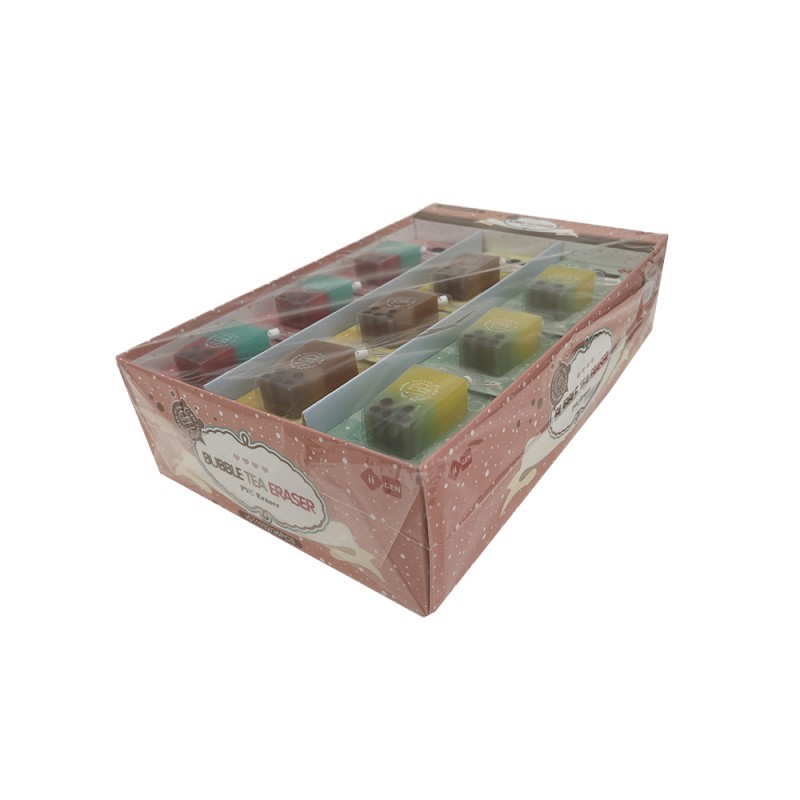 Chaque gomme Bubble Tea multicolore est envoyée de manière aléatoire, ce qui rend chaque achat encore plus excitant. Recevrez-vous un modèle fruité, lacté ou multicolore ? Le mystère ajoute un charme particulier à cette gomme déjà irrésistible... Collectionnez-les pour créer un assortiment fun et original qui embellira vos fournitures !