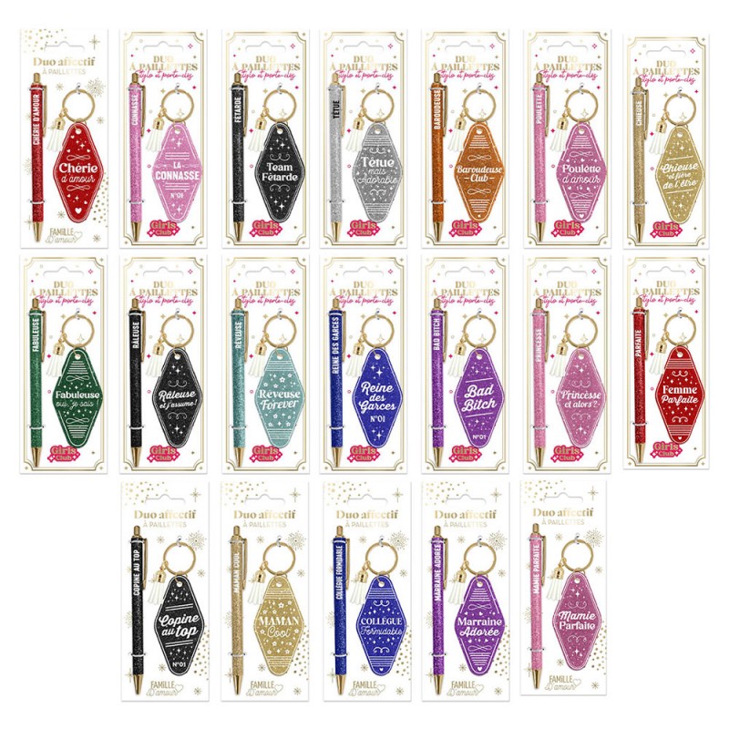 Duo de cadeaux paillettes avec stylo & porte-clés.