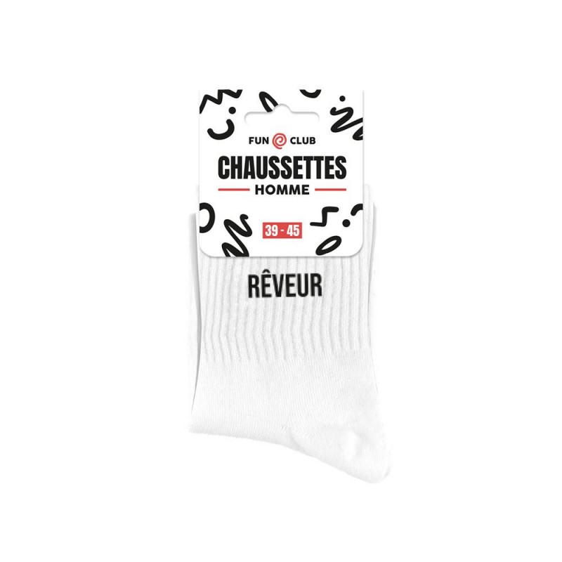 Des chaussettes homme à message pour ceux qui assument leur trait de caractère.Les chaussettes homme blanches fantaisie à message sont bien plus qu’un simple accessoire : elles reflètent une personnalité, racontent une histoire et apportent une touche d’originalité à chaque tenue. Choisissez votre message, enfilez-les… et laissez parler vos pieds ! Sélectionnez simplement votre modèle préféré : Râleur, Baroudeur, Grande Gueule ou Rêveur.