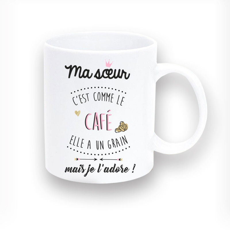 « Ma sœur, c'est comme le café, elle a un grain, mais je l'adore ! » L’immense majorité des frères, ou des sœurs d’ailleurs, pourraient sans doute prononcer un jour cette petite phrase. A la fois piquante et tendre, l’inscription de cette tasse à café originale fera fondre le cœur de toutes les grandes et petites sœurs.