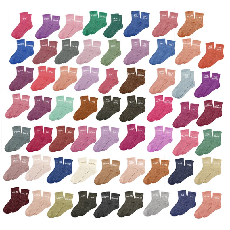 Exprimez votre humeur et votre style avec des chaussettes pailletées qui ne passent pas inaperçues ! Grâce à leur design scintillant et leurs messages pleins de caractère, elles deviennent de véritables accessoires de mode. Portez-les pour égayer votre journée, afficher votre état d’esprit ou simplement ajouter une note d’originalité à votre tenue. Elles sont la preuve que l’on peut allier confort, fun et style avec élégance !