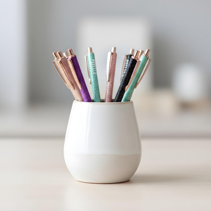Un stylo fantaisie au design ultra brillant pour faire passer un message.Parce que votre écriture mérite mieux qu’un stylo ordinaire, choisissez un modèle qui affirme qui vous êtes... Le stylo à paillettes personnalisé avec mot fantaisie est l’accessoire parfait pour celles (et ceux !) qui aiment écrire avec style et caractère. Véritable stylo bille, ce stylo fantaisie à paillettes est l’accessoire incontournable pour celles qui aiment allier humour, féminité et originalité... Au bureau, à l’école ou à la maison, il ajoute une dose de personnalité à votre quotidien.