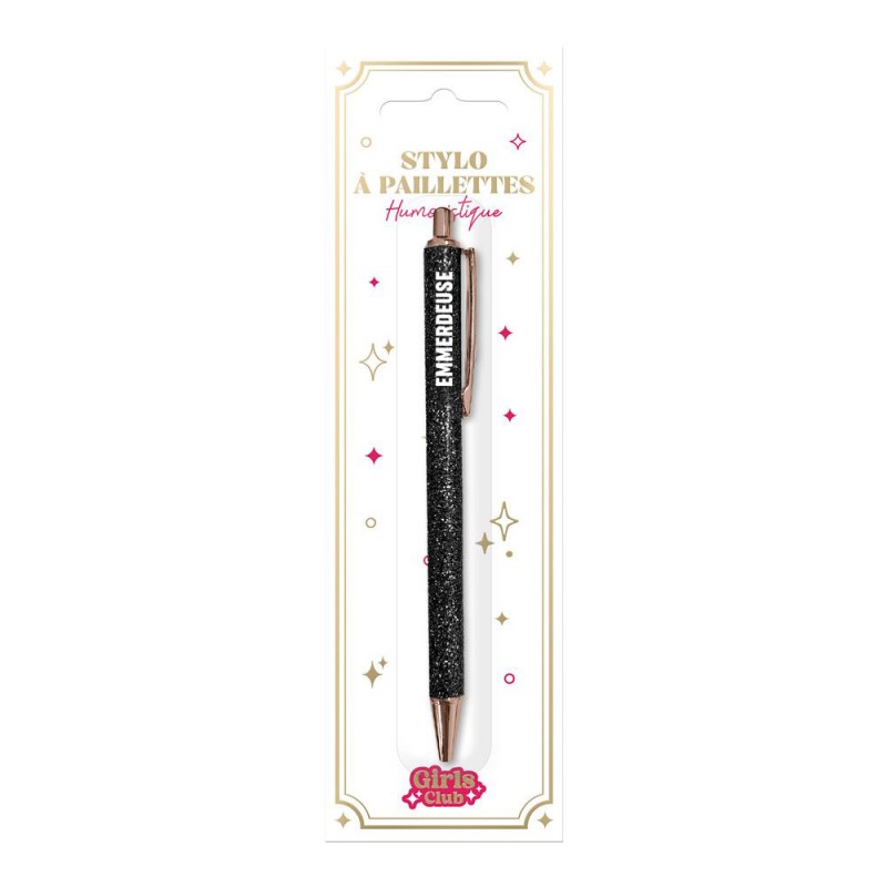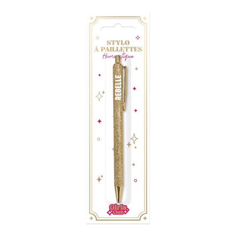 Une collection complète de stylos à paillettes avec inscription fantaisie.Choisissez votre modèle préféré et ajoutez une touche de paillettes à votre quotidien dès maintenant ! Chaque mot inscrit sur votre stylo reflète votre caractère : assumé, pétillant, rebelle ou tendre… à vous de choisir celui qui vous ressemble. Que vous soyez rebelle, pipelette, têtue ou parfaite, il existe un modèle qui vous correspond ! Osez afficher votre tempérament avec un stylo qui ne passe pas inaperçu !