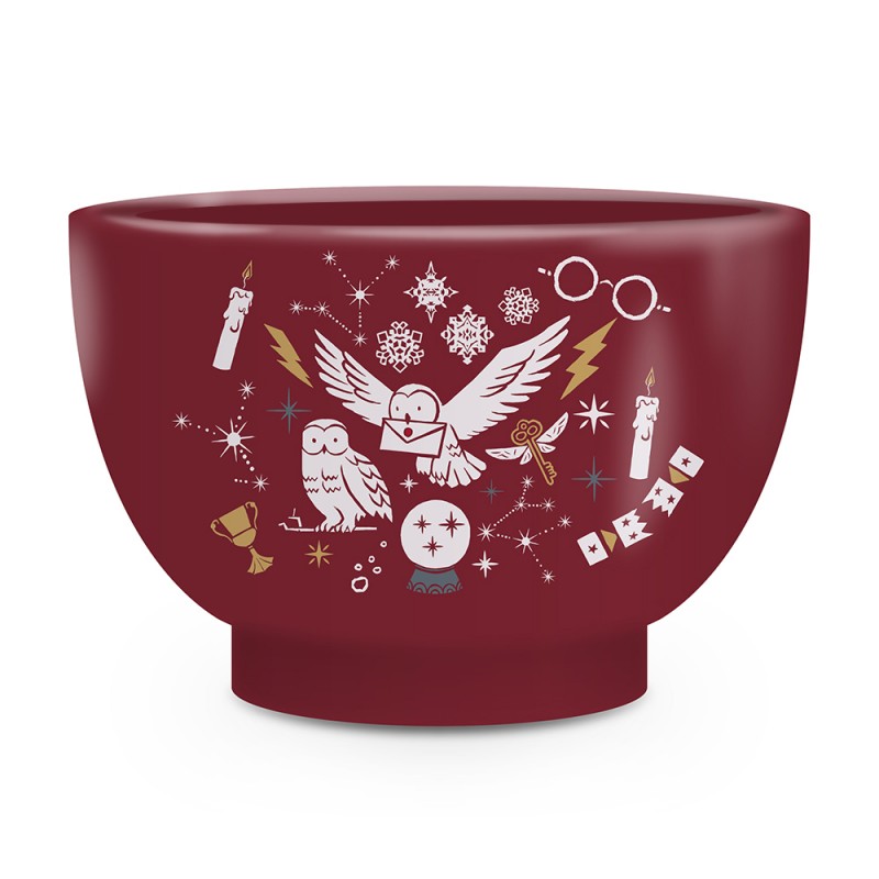 Ce bol Hedwige et symboles est non seulement trop joli mais, en plus, son visuel cache des petits messages de la saga potterphile. On y retrouve l’éclair et les lunettes d'Harry Potter, les bougies volantes qui se trouvent dans la salle commune de Poudlard, la coupe de Quidditch et plein d’autres petits éléments que seuls les vrais fans vont repérer...