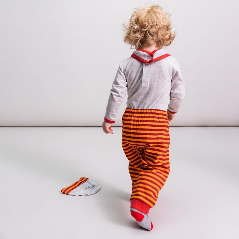 Ce pack de 5 pièces offre tout ce dont vous avez besoin pour habiller votre bébé avec style et confort. Le body à manches longues avec pressions à l’entrejambe facilite l’habillage et le change. Le pantalon sarouel à rayures Gryffondor apporte une touche magique et assure une grande liberté de mouvement. Le bonnet assorti garde la tête de bébé bien au chaud, tandis que le bavoir pratique protège ses vêtements lors des repas. Enfin, la paire de chaussettes brodées Harry Potter complète ce look ensorcelant.