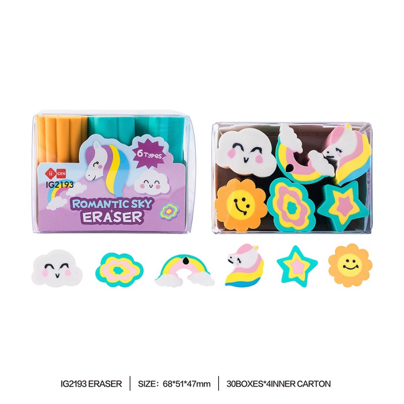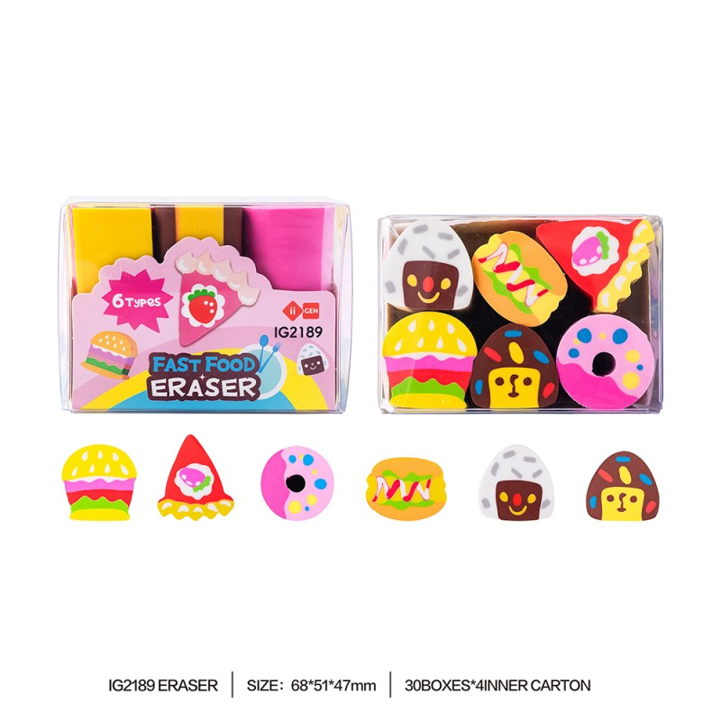 Des gommes aux designs variés et adorables pour toutes les envies de fantaisie.Craquez pour ces gommes ludiques aux formes inspirées de vos univers préférés ! Choisissez entre les modèles Fast-Food, Sports, Animaux marins, Desserts ou Ciel romantique. Chacune est conçue avec des détails fins et des couleurs éclatantes, faisant d’elles un véritable plaisir pour les yeux... En plus d’être esthétiques, elles gomment efficacement, alliant style et utilité pour égayer vos journées d’école ou de bureau !