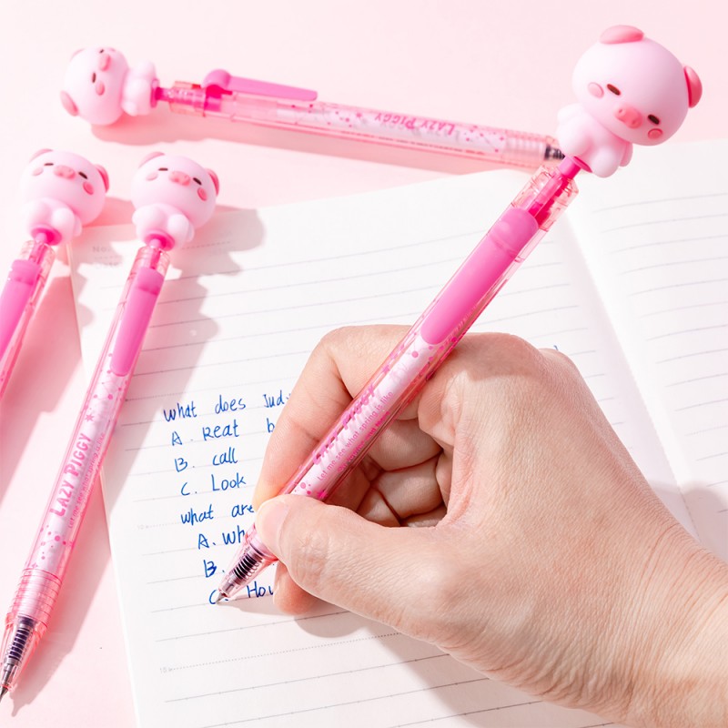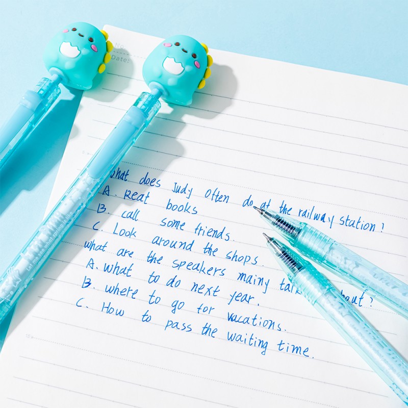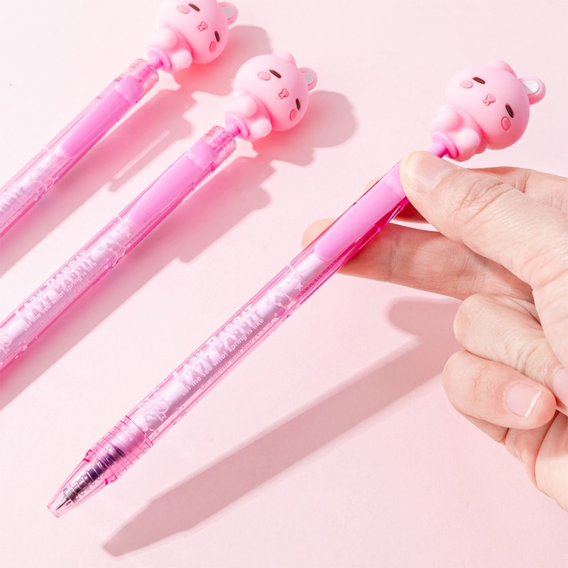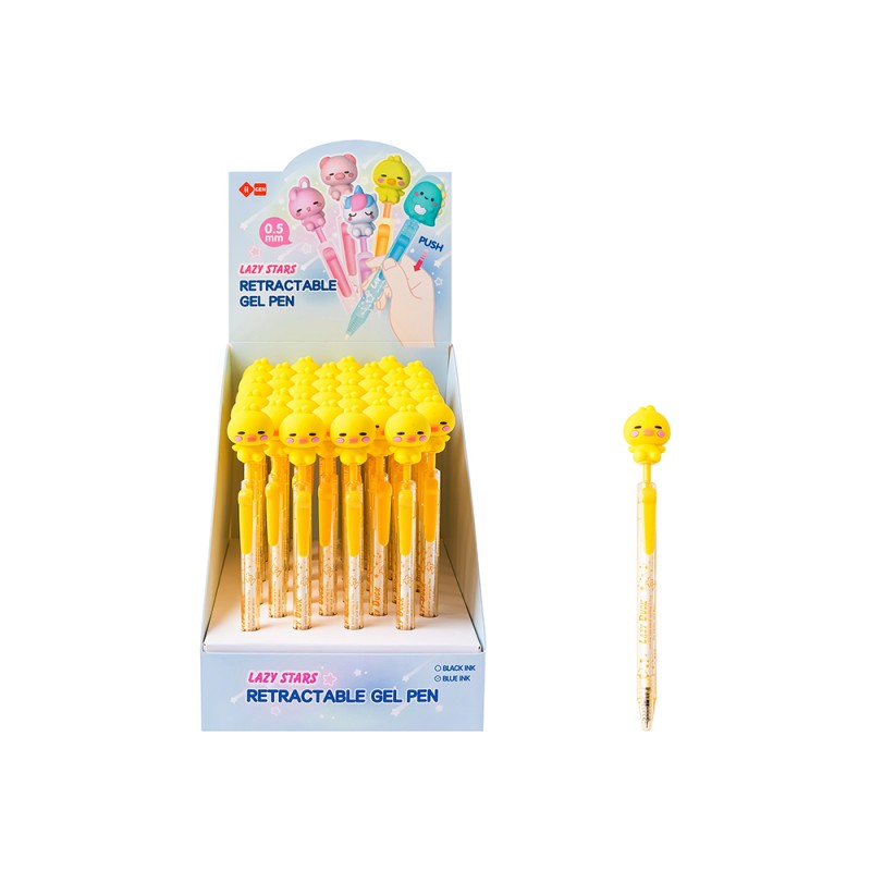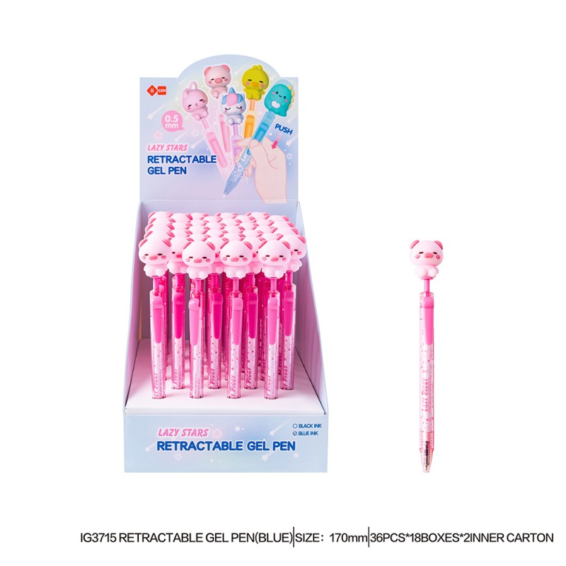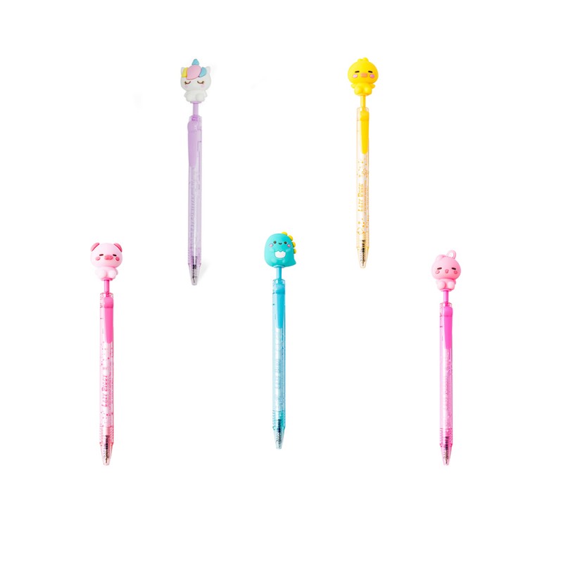 Stylo gel animaux kawaii 3D rétractable encre bleue.