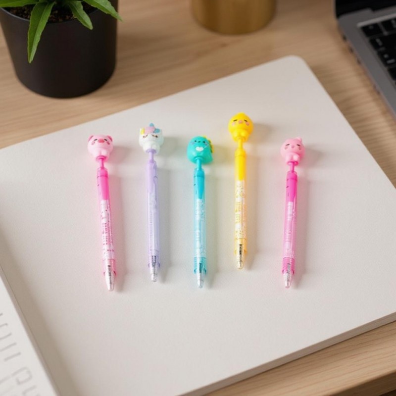 Chaque stylo est décoré d’un personnage 3D ultra craquant, fidèle à l’esthétique kawaii japonaise. Que tu sois fan du petit dino bleu, du lapin rose, du poussin jaune, du cochon rigolo ou de la licorne arc-en-ciel magique, ce stylo est fait pour toi. Sa forme ergonomique et son look unique en font un accessoire à la fois utile et décoratif, parfait pour toutes les générations d’amoureux du style mignon.