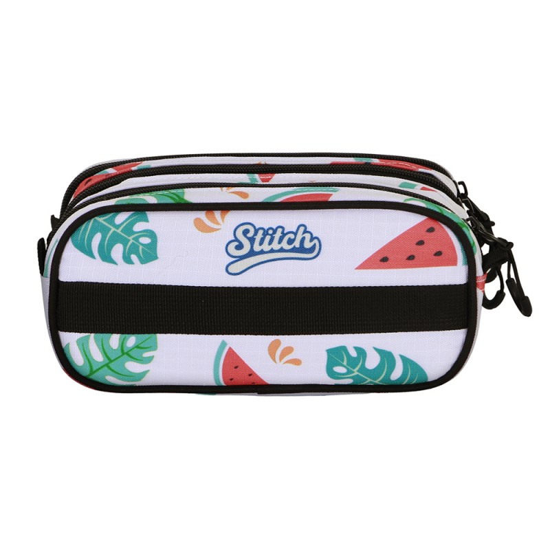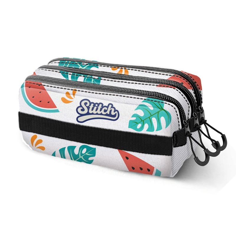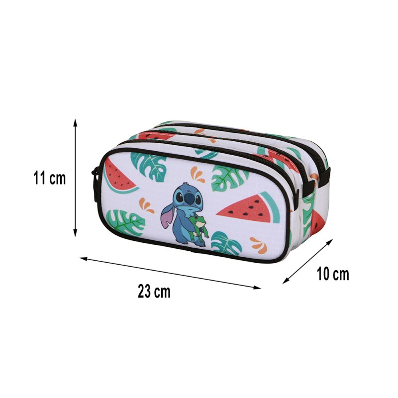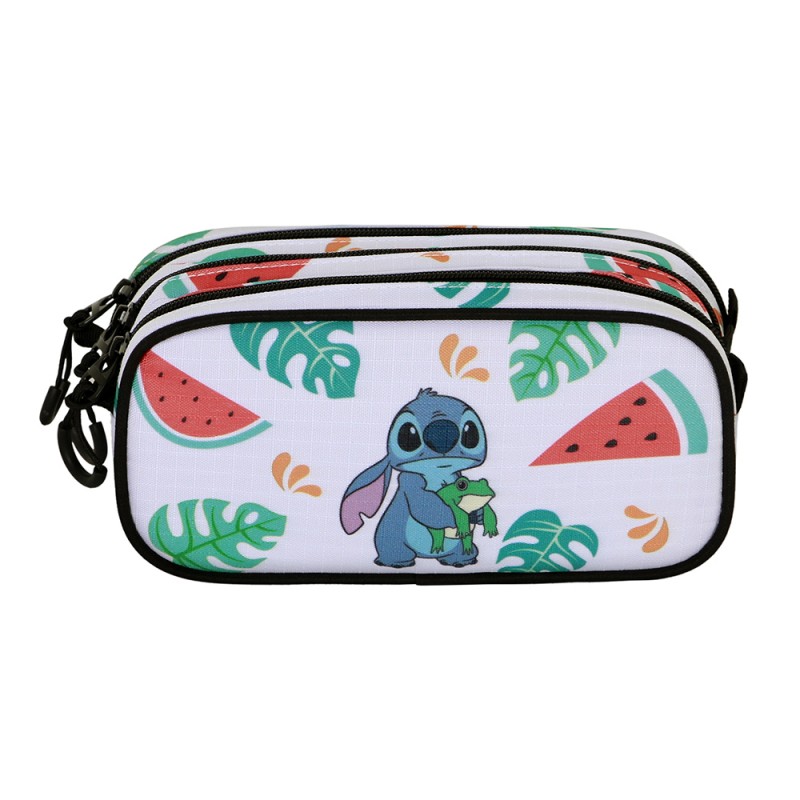 Maxi trousse Stitch Disney triple compartiment - pastèque et feuilles.