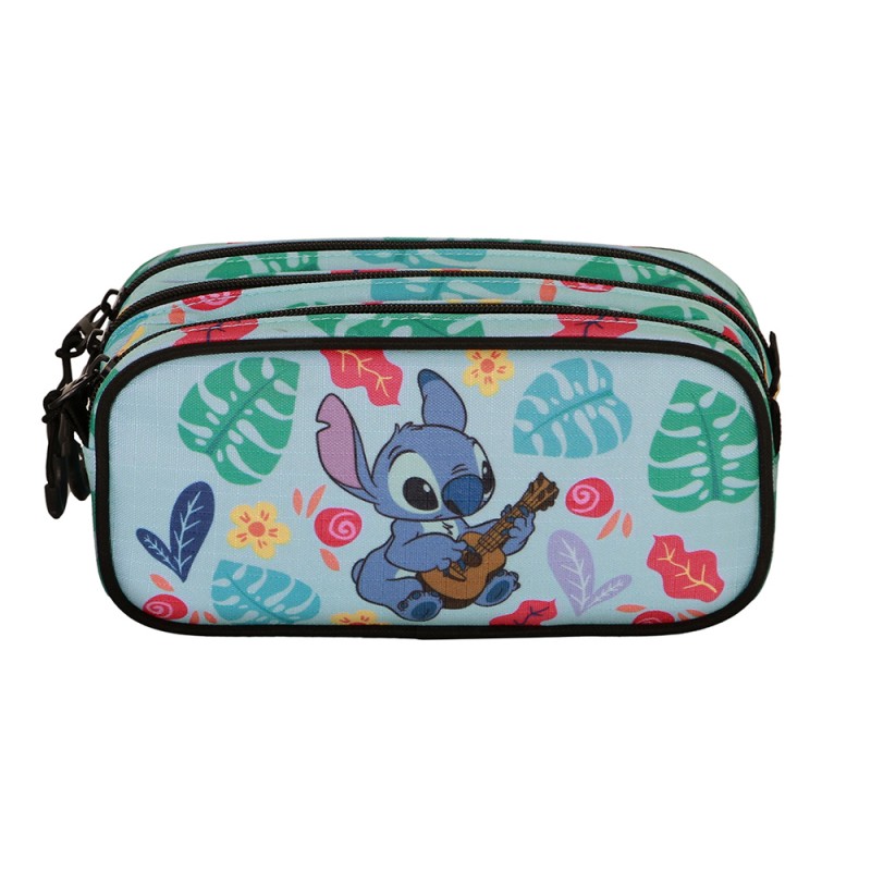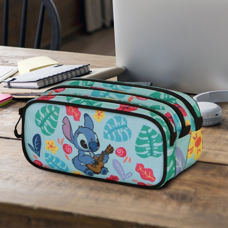 Maxi trousse Stitch Disney triple compartiment tropical guitare.