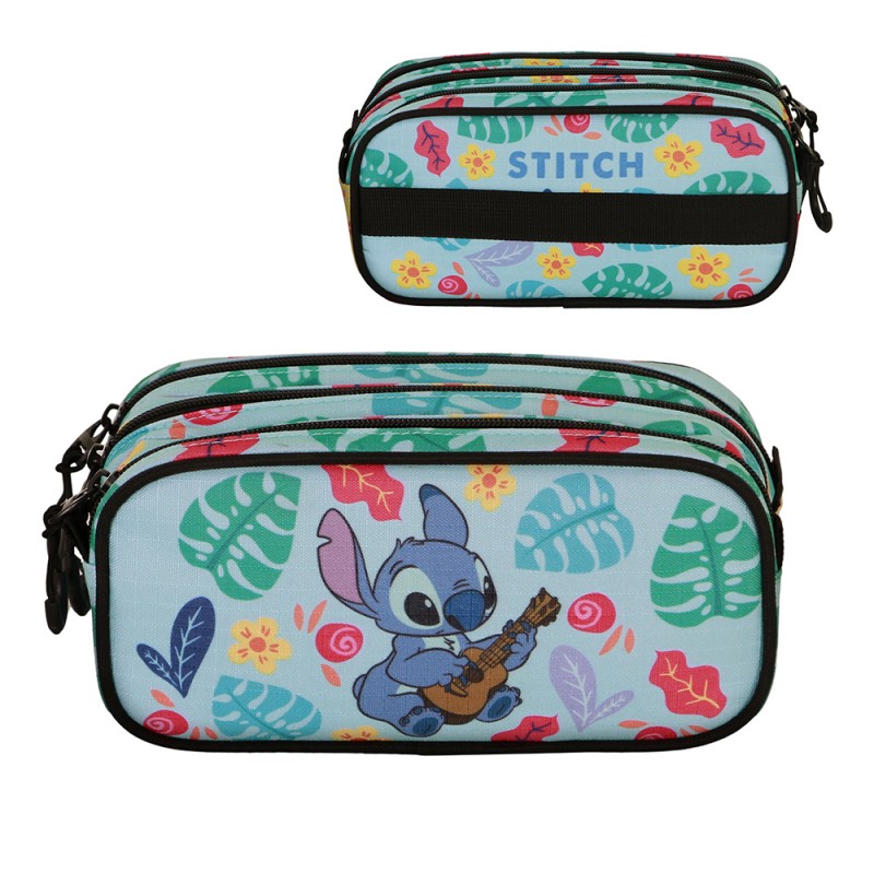 Avec Stitch représenté en train de jouer de la guitare au milieu d’un décor floral et coloré, cette trousse colorée séduit autant par son côté pratique que par son look original. Les motifs tropicaux apportent une touche estivale et joyeuse qui plaira aux enfants, adolescents et même aux adultes fans de Disney... Plus qu’un simple accessoire scolaire, c’est une véritable invitation au voyage et à la créativité. Dotée de trois compartiments à fermetures Éclair, elle permet de ranger stylos, feutres, surligneurs et accessoires scolaires en toute simplicité.