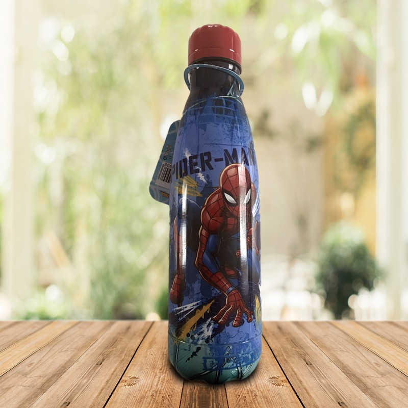 Une bouteille aluminium au design spectaculaire à l’image de Spiderman.Offrez-vous cette bouteille Spiderman de 500 ml et vivez chaque journée comme un véritable héros Marvel ! Avec ses motifs colorés et fidèles au super-héros Marvel, cette bouteille séduit autant les enfants que les adultes. Que ce soit le regard intense de Spiderman ou une scène d’action héroïque, chaque modèle évoque l’univers captivant des comics et films Marvel. Plus qu’une simple gourde, c’est un accessoire qui reflète votre passion geek et ajoute une touche de fun à vos pauses !