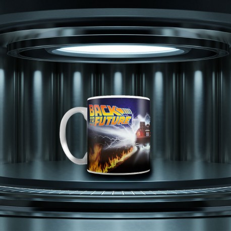 Mug Retour vers le Futur à surface thermoréactive : lorsque vous versez une boisson chaude à l'intérieur du mug, son imprimé se modifie comme par magie.